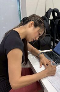 ○生放送前に進行表を再チェックする岡部 友先生
